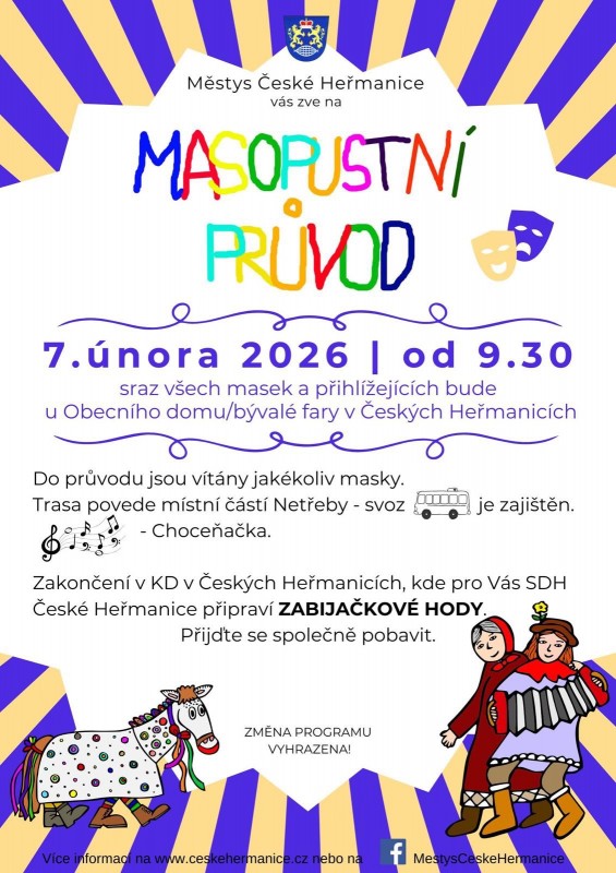 Vstupenky je možné zakoupit již nyní na Úřadu městyse v Českých Heřmanicích nebo na místě.